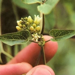 A vining plant in the milkweed family. Smooth, heart-shaped leaves with white veining. Grows up to 15 ft. long, wrapping its stems around adjacent vegetation and fences. Prefers sun and dry soil, but also grows in moist, fertile soils.