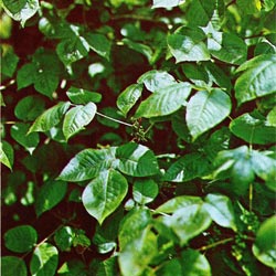 Perennial woody vine or shrub, often climbing by short rootlets on trees or fences. Smooth stems, light brown to grayish. Alternate leaves with three large, broad, shiny leaflets with either smooth or irregular-toothed edges. Smooth, almost round, greenish-white berries about 1/4 inch diameter. Found in open woods, fencerows, old fields and on ditch banks.