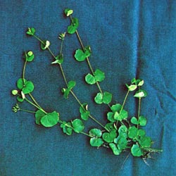 Annual. Stems prostrate, succulent, spreading. Leaves round to kidney-shaped, opposite, bright green. Flowers inconspicuous, With oval seed pod. Found in gardens, roadsides, ditches in warmest regions of Southeast.